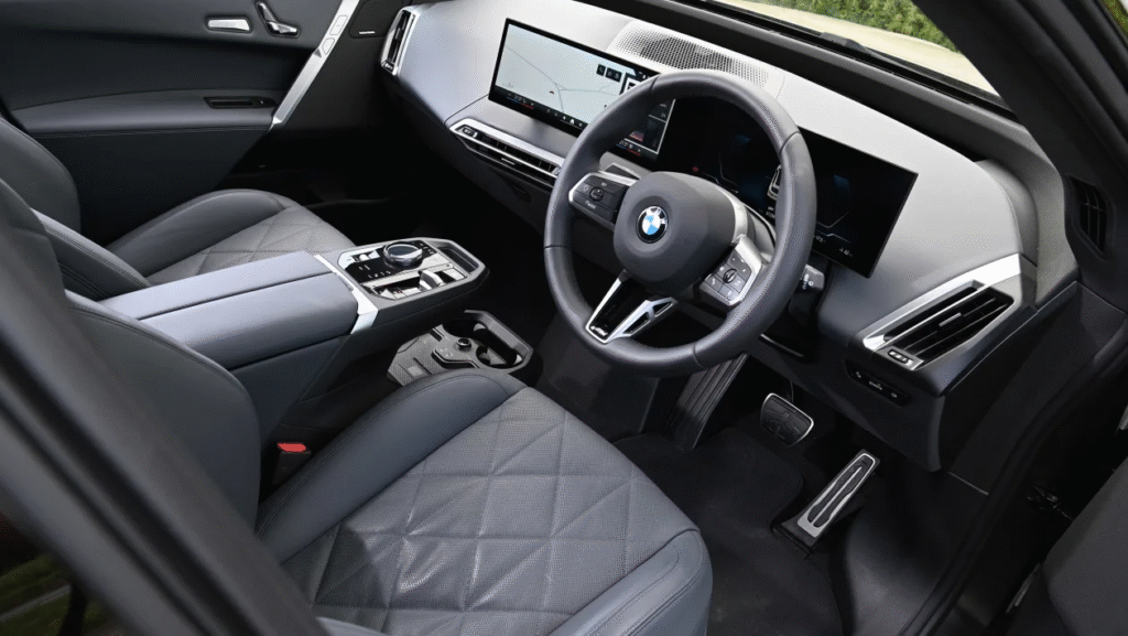 Away from the numbers, the iX simply feels well sorted. Steering is light yet accurate, the chassis remains composed when you press on, and motorway pace barely disturbs conversation. The cabin backs that up with rich materials, crisp twin displays and the welcome retention of iDrive’s clickwheel, which makes mid-journey adjustments instinctive. Space is generous for passengers, and while the boot isn’t class-leading, the near-flat load area and split-folding backrests make family life easy.