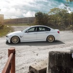 The M3 you can see in the pictures is equipped with a set of HRE R101 Wheels that compliment the clean white surface. Besides the new wheels, the M3 is lowered a bit so it’s now closer to the ground, which improves both the looks and the driving dynamics.