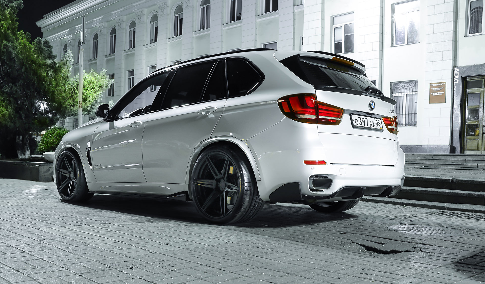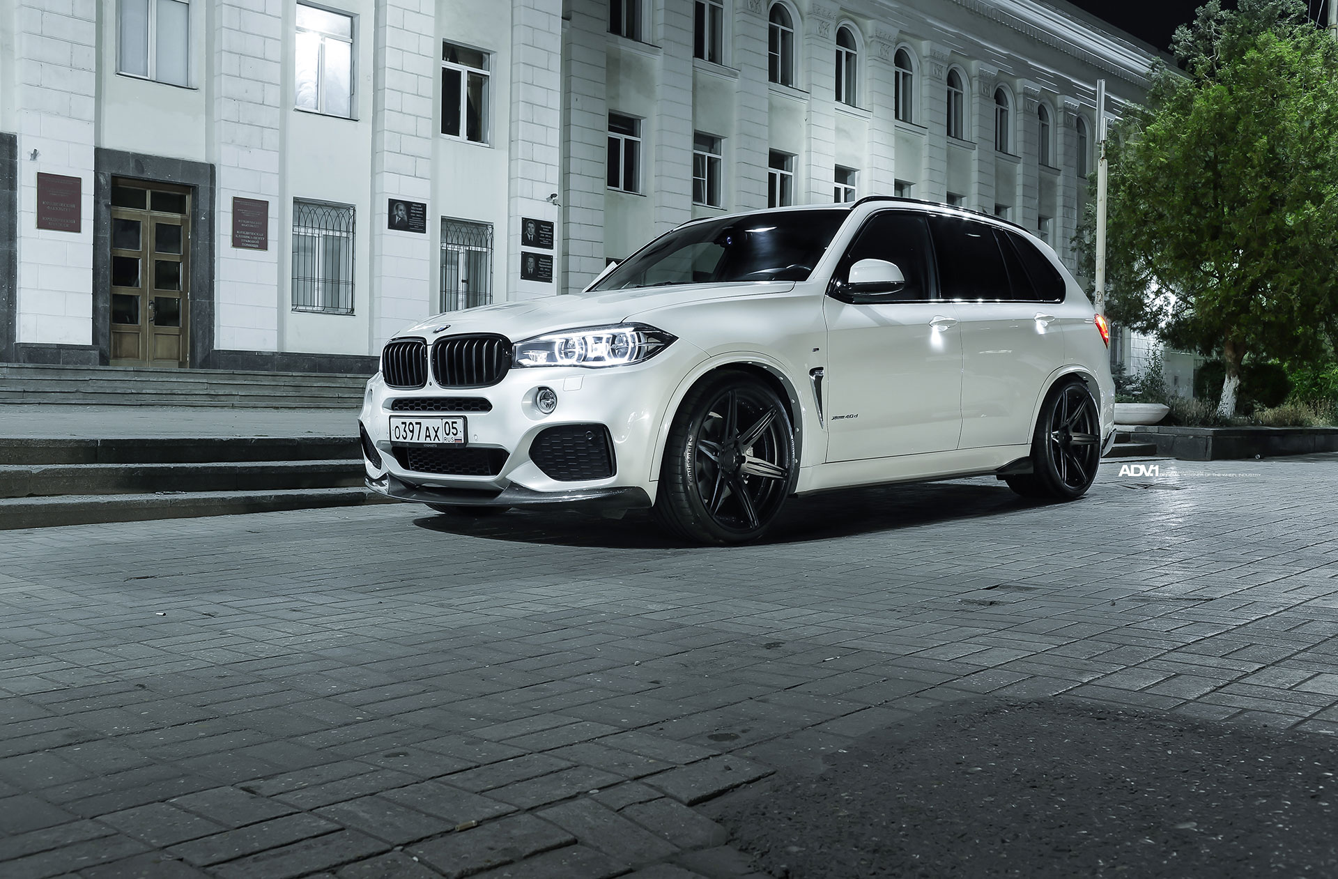 The BMW X5 xDrive40d comes powered with a 3.0 Liter diesel engine, delivering 381 horsepower. It combines a very aggressive look with a powerful mill. The vehicle sprints from 0-62mph (0-100km/h) in just 6.3 seconds. Aside from offering a lot of interior space, it is also very practical and consumes just 6.0 liters of fuel per 100 kilometers. It is impressively low for an SUV this big at 40 miles per gallon. No wonder the sales of the BMW X5 xDrive40d have been really high. While most owners are happy with the stock look, some still opt to add a touch of personality to it through aftermarket parts. Here is a nice example: an Alpine White BMW X5 M With ADV.1 Wheels.