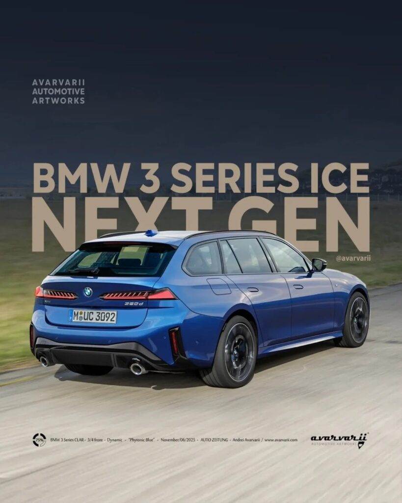 A recent digital rendering from designer @avarvarii has provided one of the clearest previews yet of the Touring variant. Shown from multiple angles, the car is imagined as a sleek five-door estate, aimed squarely at long-roof rivals such as the new Audi A5 Avant (the successor to the A4 Avant) and the Mercedes-Benz C-Class Estate. The visuals suggest a clean roofline, a practical tailgate and muscular rear haunches, mixing everyday usability with a distinctly sporting edge that fits neatly with BMW’s positioning for the 3 Series.