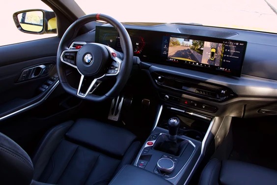 Inside, the M3 balances luxury and purpose. BMW’s curved dual-screen layout combines a 12.3-inch digital instrument cluster with a 14.9-inch touchscreen running the latest iDrive software, complete with performance timers, configurable drive modes and optional track tools such as lap timing and drift analysis. The standard front seats blend long-distance comfort with strong lateral support, while the 40:20:40 split-fold rear bench and 480-litre boot add genuine practicality for everyday use. Road noise and engine sound remind you that this is a performance car, but at motorway speeds it settles into a stable, confident cruise. As one of the last high-power manual sports saloons on sale, the 2025 BMW M3 keeps the art of changing gear yourself very much alive, rewarding drivers who still enjoy being an active part of the process.