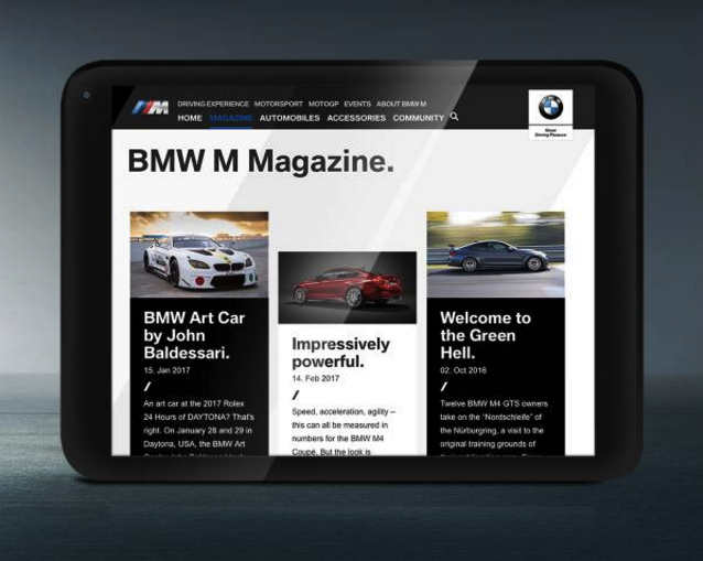 The website includes the BMW M Magazine which provides an exciting glimpse into the world of BMW M with articles published regularly, while one-pagers introduce the BMW M models, BMW Individual and BMW Driving Experience events. The exclusive M Community area offers additional content and functions for M drivers.