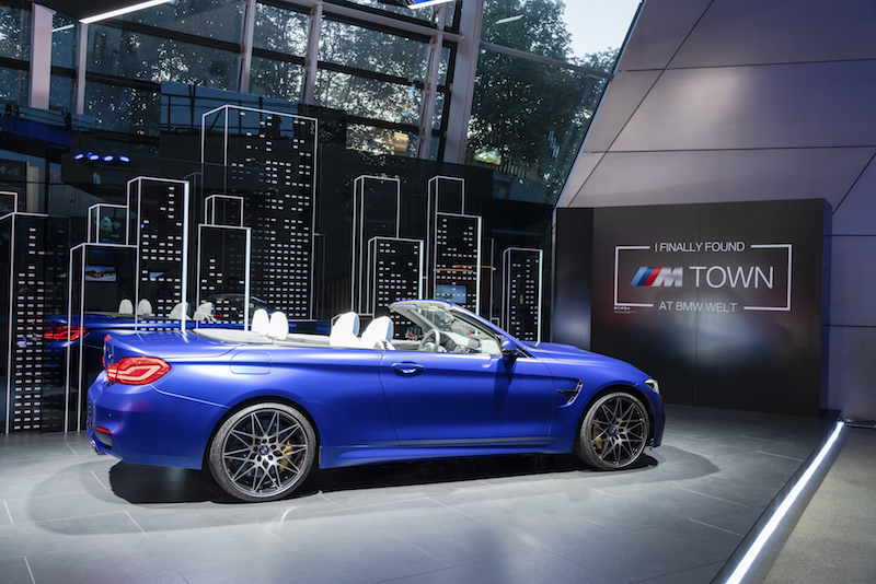 The new BMW M exhibition space is dedicated entirely to the most powerful letter in the world. Automobile fans with a passion for motorsports and design can discover the M Town way of life in a virtual town showcased with spectacular videos on bmw-m.com. Here everything focuses on the high-performance sports cars by BMW M GmbH and fascinating everyday driving experiences. An illuminated graphic display of M Town, which disappears into the distance perspectively on a large LED Screen, points the way to the virtual dream city. The elegant ceiling illumination made up of shining black and dynamically shaped jets, reflects the dynamic character of the vehicles on display. At the “Selfie Point” visitors can share their experience on social media and record their impressions under the motto “I finally found M Town at BMW Welt”. “M Town now also finds a very special home at BMW Welt. The newly designed exhibition space invites every car enthusiast to become a citizen of M Town for a short time”, says Markus Flasch, Director of BMW M GmbH.