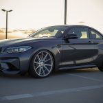 The BMW M2 in Mineral Gray comes with a new set of wheels and modified suspension. The wheels were chosen by the Vossen Wheels catalog and they are the VFS-1 Vossen model. The KW V3 suspension kit provides a better stance to the car. There are also new tires coming from Dunlop Sport Maxx.