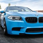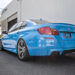 The car you see in the pictures was dressed up in Riviera Blue, one of the most famous colors 993 Porsche Carrera RS used. We find that it fits the M5 really well.
