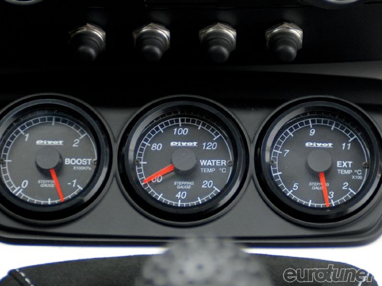 Engine: three-liter 24v straight-six twin-turbo with Active Autowerke Active Processor 2 piggyback ECU, front-mount intercooler and blow-off valve, aFe dual intake system, Arqray custom muffler, Pivot Racing 3-Drive Flat throttle controller, Link Earth TP-Checker, Okada Projects Plasma Direct and Plasma Ground ignition coils