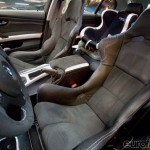 Interior: Recaro SP-A driver’s seat and SP-G3 passenger seat on Studie frames, interior reupholstered in black leather and alcantara by Newing, BMW Performance T-2 steering wheel, Stack ST8130 instrument display, custom JBL loudspeakers, Glad white LED interior bulbs.