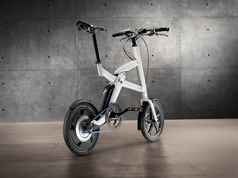 Like the BMW i3, the BMW i Pedelec Concept is a thoroughly high-tech form of personal transport. Advanced componentry – such as disc brakes at the front and rear, a three-speed gear hub integrated into the motor, a lightweight frame made (like the BMW i3 Concept) from aluminium and carbon fibre, a torquey electric motor complete with electronic management system and high-performance battery, and a clever folding mechanism – make this motor-assisted bicycle an extremely practical transportation solution. As well as its impressive riding and packing characteristics, the BMW i Pedelec Concept can also be converted in a matter of seconds to offer a handy pushing mode, which allows it to be rolled and steered and therefore taken on public transport at no extra cost, saving the rider the effort of having to carry it around.