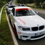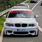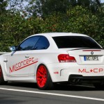 Here’s a BMW 1M spotted at the legendary Nurburgring race track with some flashy mods. The Alpine White 1M retained its stock wheels but a red paint or powder were added, added some M Performance Parts including rear spoiler and blacked out kidney grille. What do you think of this look?