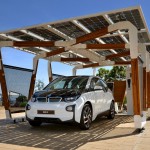In tune with nature – and with the BMW i design idiom: BMW Group DesignworksUSA develops a solar carport concept. Premium product for private solar-powered electricity generation – Green energy supply gives a further boost to vehicle life cycle assessment – Another building block in the holistic sustainability concept – World premiere to mark the BMW i8 presentation in Los Angeles.