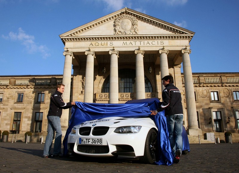 BMW Motorsport was a prominent feature in many regards at the Stiftung Deutsche Sporthilfe’s “Ball des Sports†on Saturday evening. The arrival of BMW Motorsport Director Jens Marquardt, along with BMW DTM drivers, Bruno Spengler (CA) and Dirk Werner (DE), was in keeping with the occasion: they and their partners pulled up to the Rhein-Main-Hallen in Wiesbaden (DE) in the new BMW M3 DTM Safety Car. Based on the BMW M3 GTS, the car was specially modified by BMW M GmbH for use on several DTM race weekends over the course of the 2012 season. The modifications included the use of many products from the new BMW M Performance Accessories range. The most spectacular changes are the orange lights on the roof of the car, which are typical of Safety Cars, and the bolted, steel-pipe safety cell.