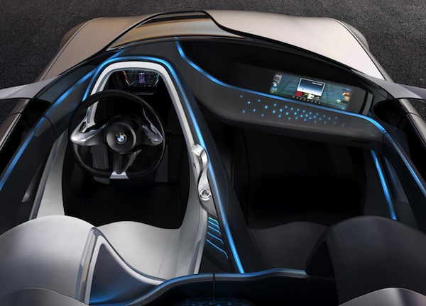 The electrical properties change depending on where the fabric is touched, and finger touches or slides on different areas can be programmed to control air-conditioning or change the volume of the stereo. The same kind of touch sensitive technology has already been seen in the dashboard of the Vision ConnectedDrive Concept at the 2011 Geneva auto show.