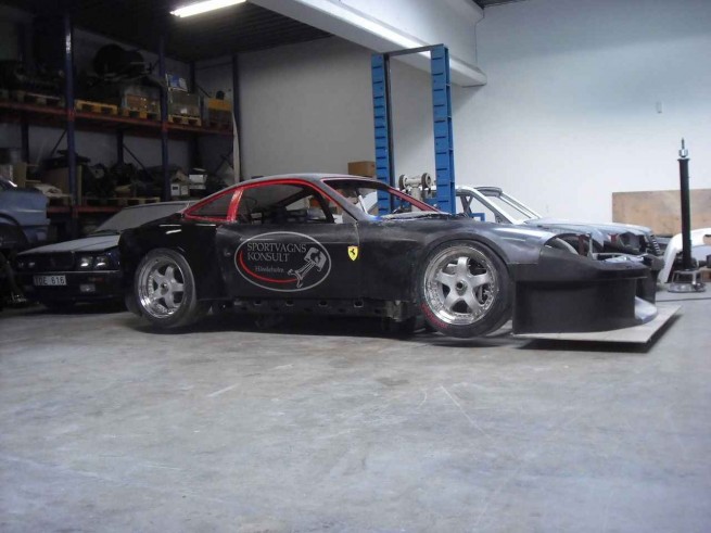 SVK Customs, a tuner from Sweden, has just released some details about their unique and exciting project: a Ferrari 550 GTR with carbon-fiber body gets a BMW V8 powerplant under the hood. Jalopnik reports that SVK Customs built their own carbon-fiber body kit for the 550 GTR measuring 7.15 feet wide in the rear and 6.99 in the front by utilizing CAD technology. The design was symmetrical and the steering angle was set to 55 degrees. SVK Customs kept the Ferrari drivetrain but they chose to install a BMW V8 engine. Quite a unique combination huh?