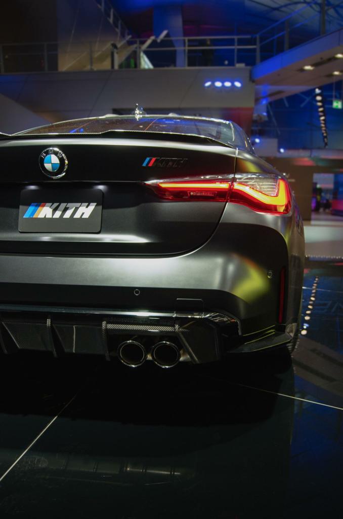 Meanwhile, the M4 Competition gets Kith elements like the massive “KITH” logo painted on the carbon fiber roof, mirroring the BMW M logo style. And in place of the M4 Competition logo on the trunk lid, the M-style “KITH†logo is there. Finally, Kith replaced the BMW Roundels with its own.