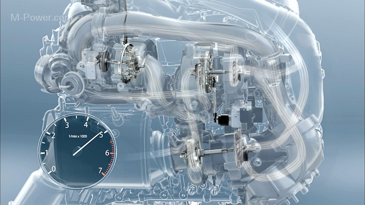 According to the driving situation, the low moment of inertia of the small turbochargers is exploited to the full to deliver razor-sharp responses, while the link-up with the large turbo is maximized to generate as much charge pressure as possible.