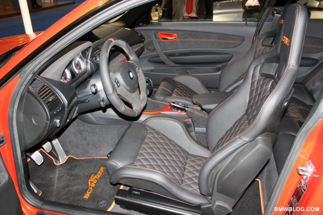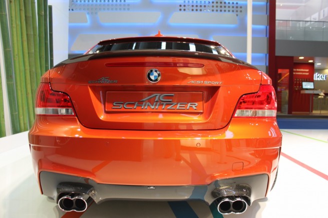 AC Schnitzer brings their own version of the BMW 1 Series M Coupe to the 2011 Frankfurt Auto Show. This vehicle received a significant power upgrade, bringing the power to 400hp from the standard 340hp. AC Schnitzer twin sports rear silencer with chromed “Racing†tailpipe were installed for thrilling acoustics. A high performance brake system with 6piston caliper at front and 4piston caliper at the rear and a fully adjustable AC Schnitzer racing suspension were added as well.