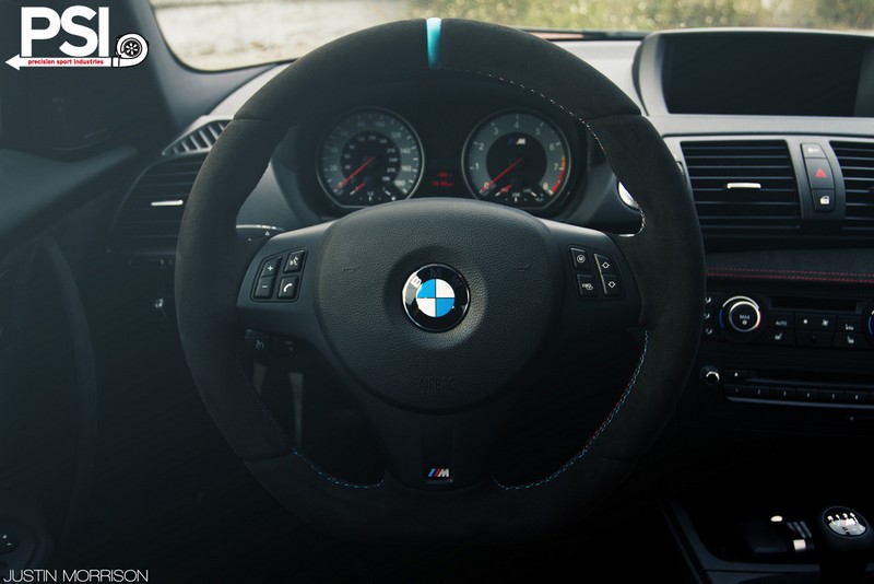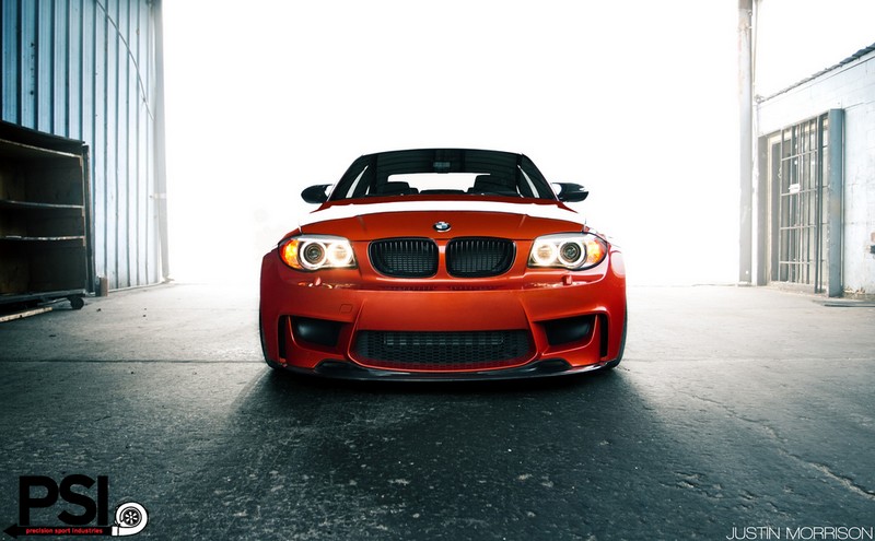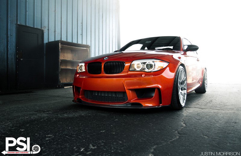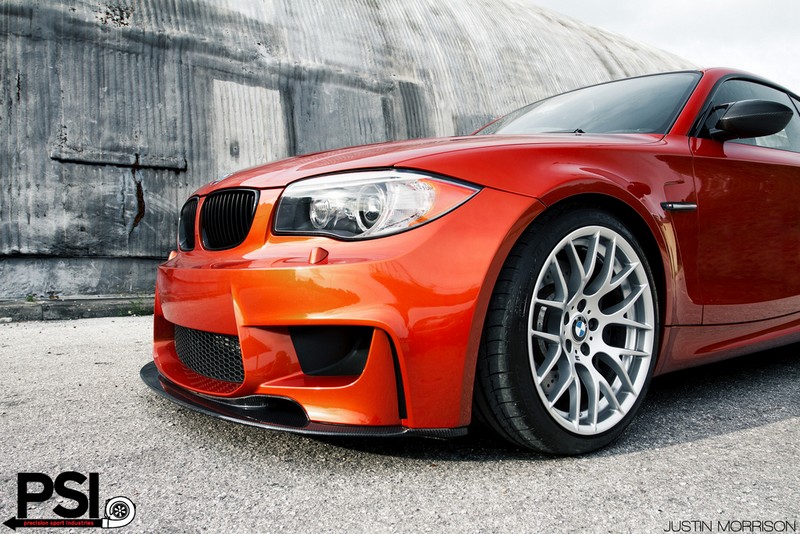 Precision Sport Industries, a USA based tuner, gives extensive cosmetic updates to the BMW 1 Series M Coupe to make it more aggressive. It features the BMW Performance black kidney grille, Slek CF front splitter, carbon fiber trunk spoiler from the BMW Performance Parts catalog, a Revozport rear 2×2 CF diffuser, carbon fiber side mirrors, Akrapovic Evolution titanium exhaust, KW V3s Suspensions, Macht Schnell front and rear 10mm spacers, extended bolts, and BMW Performance Alcantara M steering wheel. Here are some photos of the finished product: