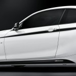 The market launch of the BMW 2 Series Coupé clinches pole position in the premium compact segment. The figure 2 in the model designation stands for supreme sporty flair while the letter M refers to the attractive features available for making a dynamic driving experience even more intensive. As in the case of the BMW M Performance automobile BMW M235i, BMW M Performance parts developed for all variants of the BMW 2 Series Coupé will be available as of the market launch in March 2014. The retrofit components designed in close collaboration with BMW M GmbH in the areas of drivetrain, suspension, aerodynamics and cockpit perceptibly boost driving dynamics as well as underscoring the athletic appearance and sporty interior ambience of the new 2-door model. The product selection forms part of the Original BMW Parts program and enables the driver of a BMW 2 Series Coupé to add a touch of individual style in a way that expresses motor racing enthusiasm.
