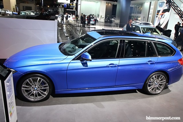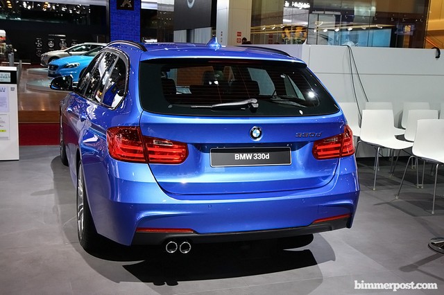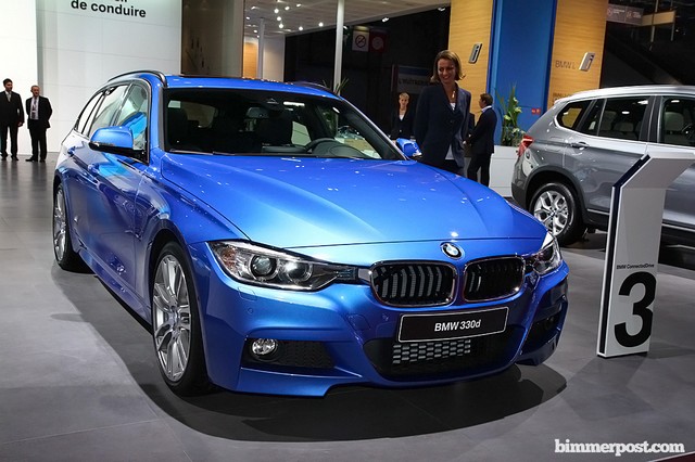 The BMW 330d Touring M Sport (F31) is currently on display at the 2012 Paris motor show. It is wearing the signature color of the F30 and F31 M sport package. The 330d touring delivers 258PS and 560Nm torque, and a fuel economy of 55.4mpg. Here are some photos from the show: