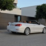 High-gloss chrome touches give the exterior of the BMW 4 Series Convertible a particularly elegant and exclusive appeal. 11 kidney grille slats with chromed fronts and matte black sides, two high-gloss double bridges in the front apron’s outer air intakes and chromed Air Breathers all offer elegant touches. The chrome window surround is another visual highlight, with special 18-inch or optional 19-inch light-alloy wheels (435i only) available. The BMW 4 Series Convertible Luxury Line is recognized from the rear by a high-gloss chrome strip in the rear apron and the chrome exhaust tips. The interior also stands out with various chrome elements, such as the surround for the audio and air conditioning system. High-gloss wood strips, leather seats with stitching and a choice of two upholstery variants in four colors highlight the possibilities in the Luxury Line. Exclusively available for the BMW 4 Series, Ash Grain anthracite fine wood trim surfaces and a Pearl Gloss Chrome metal inlay round off the Luxury Line features.