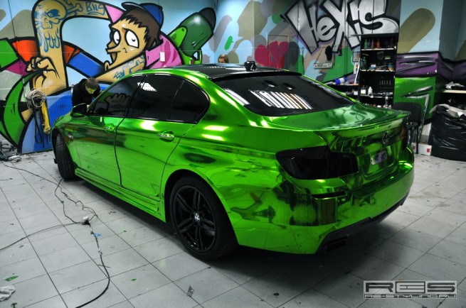This BMW 5 Series in Green Chrome is one of a kind. This brand new vehicle was Alpine White with the M Sport package when it was purchased. Then the owner decided to apply the green treatment on the car. Re-Styling, a Russian tuning company from Saint-Persburg, worked on the transformation. A Hamann body kit and some parts from AC Schnitzer were also added to increase aggressiveness. What do you think about this styling decision?