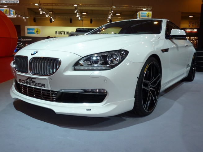 Here are the first real life photos of the new BMW 6 Series Coupe by AC Schnitzer which just launched last week. It was spotted at the 2011 Essen Motor Show, with a new aero kit, revised front air dams, front bumper lip spoiler, chrome grille integrated in the bumper, rear apron and rear spoiler, as well a new exhaust system with chrome tailpipes. A set of Schnitzer suspension springs were fitted to the car, along with 21-inch alloy wheels and 295 mm wide tires on the rear axle. The car is powered by a V8 delivering 533 horsepower and 750 Nm (553 lb-ft torque). 0 to 100 km/h (62 mph) is achieved in 4.3 seconds. Top speed is 325 km/h (202mph).