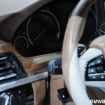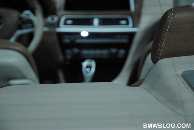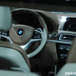 The interior is sleek with a more dynamic driver-centric IP. The passenger side dash top looks very interesting and the surface above the glove box fits beautifully along the center stack and into the center console. It features the iDrive Control Display, central air vents, and the audio and climate controls all accessible to the driver. The high-quality leather materials used in the interior with double stitching in a contrasting color accentuates the smooth transition between the centre console and the instrument panel.