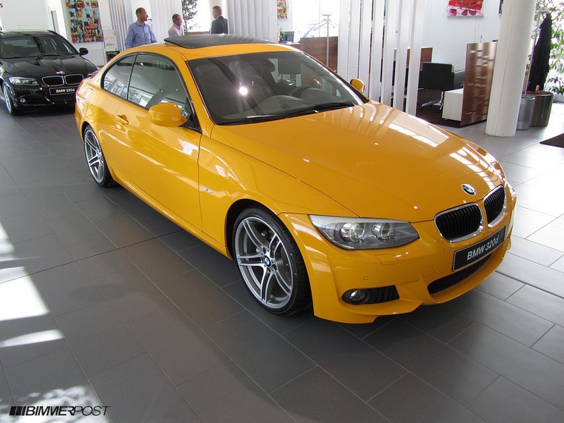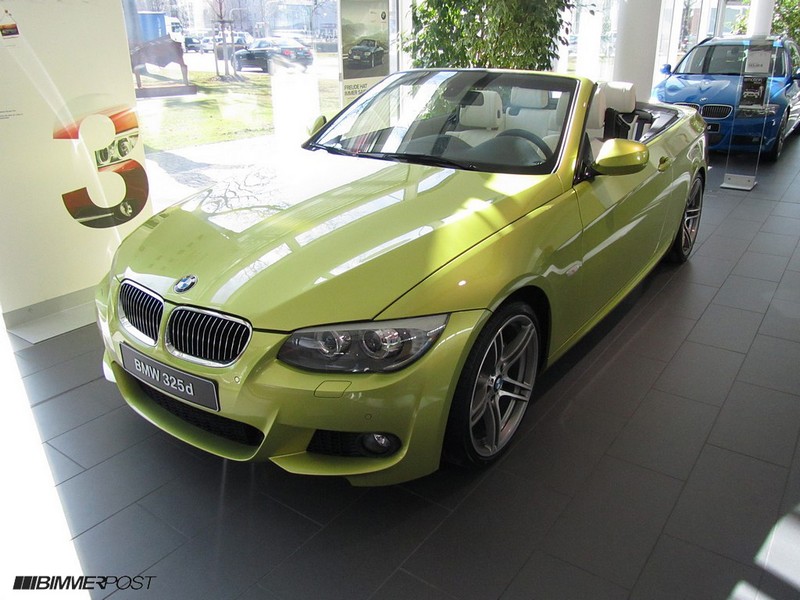 A Munich dealership displayed some of the most eye-catching models including BMW Individual models in all kinds of colors, leathers, and trims. Here are a few Individual E9x generation 3 Series wearing including Enzian Blue, Graphite Blue, Lime Yellow, and Mandarin 2 colors.