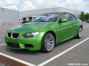 These are some photos of the BMW M3 Coupe in Power Green color. No details have been given about this car, but it is most likely ordered from the BMW Individual catalog. The BMW Individual catalog, a division of M GmbH, has been available since 1991 to cater to the needs to customer who want more individuality to their BMW both designs and features. A special paint color like this would cost around $5,000 in the U.S. Do you think its worth the price?