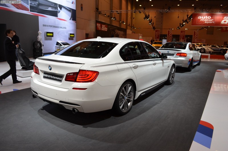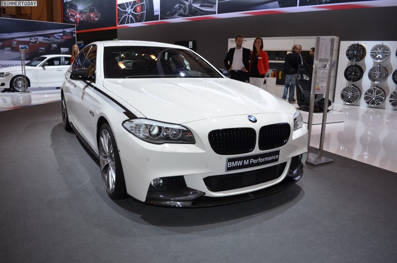 BMW presented tuning parts for the BMW 1 Series F20, BMW M3 Coupe and the BMW 5 Series F10 at the 2012 Essen Motor Show. To achieve a sporty look, the vehicles feature white exterior paint and carbon fiber elements.