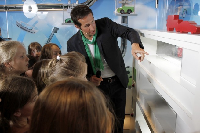 Press Release: The reopening of the Junior Campus at BMW Welt was celebrated with a function yesterday morning. Willi Weitzel, “guest educator” and moderator of the event, joined a class of elementary school children in exploring the redesigned Campus Portal together with other guests included representatives of the press, the public and the company. Later, Weitzel and a group of seventh-grade girls built a solar vehicle in keeping with the revised Campus concept.