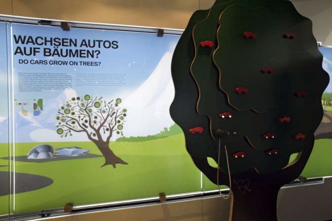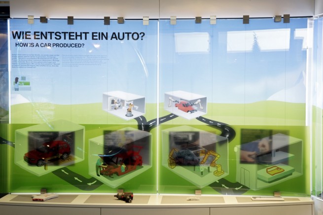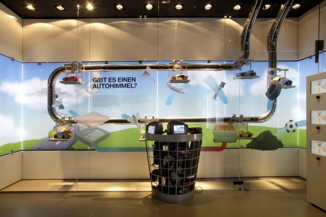 The new Junior Campus Portal visualizes a vehicle’s lifecycle with respect to sustainability. Six workstations – ranging from raw material sourcing to the production line and the recycling of parts – explain this cycle in a way that is easy to understand, hands-on and self-explanatory. All exhibits are identical as far as their structural setup is concerned: Each of them includes a brief explanation as well as age-appropriate possibilities of interaction for children.