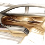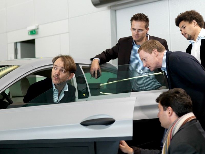 The waistline surfaces of the doors form a subtly dynamic wedge shape, which extends into the luggage compartment cover. The dynamic character of the door surface design generates a feeling of depth which envelops the passengers in their seats, while the interplay of convex and concave surfaces evokes a sense of exclusive security.
