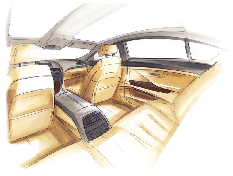 BMW 6 Series Gran Coupe create a visual link with the second row of seats, emphasising the size of the interior. The elegant lines of the door trim, familiar from the other BMW 6 Series models, continue into the rear compartment, incorporating the B-pillar as a design element along the way. The sweeping design of the door panels flows harmoniously from the front doors via the B-pillars to the rear doors. The center console also stretches through to the rear. Precise contours help to create an intriguing contrast with the interior’s soft, curvaceous surfaces, producing a vibrant and dynamic collage of forms.