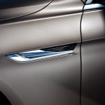 Another character line, emerging from the curvature of the front wheel arch, drops down between the gill feature and the door, before levelling out and extending horizontally to the rear. The unbroken shadow surface above the side sill emphasises the car’s muscular stance from the side.