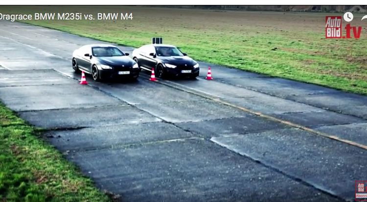 Who wins the battle of the 1/4 mile, the BMW M235i Coupe with 326 hp, or the heavier M4 Coupe with 431 hp? Watch here.
