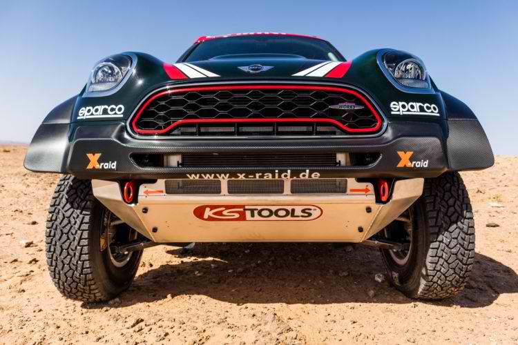 The Dakar Rally car is powered by a 3-liter straight six BMW engine making 340 HP at just 3,450 RPM along with 800 Nm (590 lb-ft) of torque at 1,850 RPM. It is matted to an AP Racing clutch combined with a six-speed SADEV sequential gearbox.